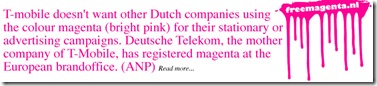 Les dejo algunas fotos de una campaña para liberar al color Magenta... tan importante cuando a uno le piden en la escuela de arte armar una escala de violetas, que no podría mezclarse con acrílicos, de otra manera que no sea comprando un magenta rosado... xD